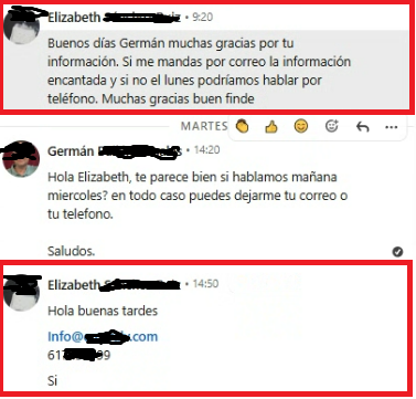 Respuestas positivas (Detalles personales ocultos por privacidad):